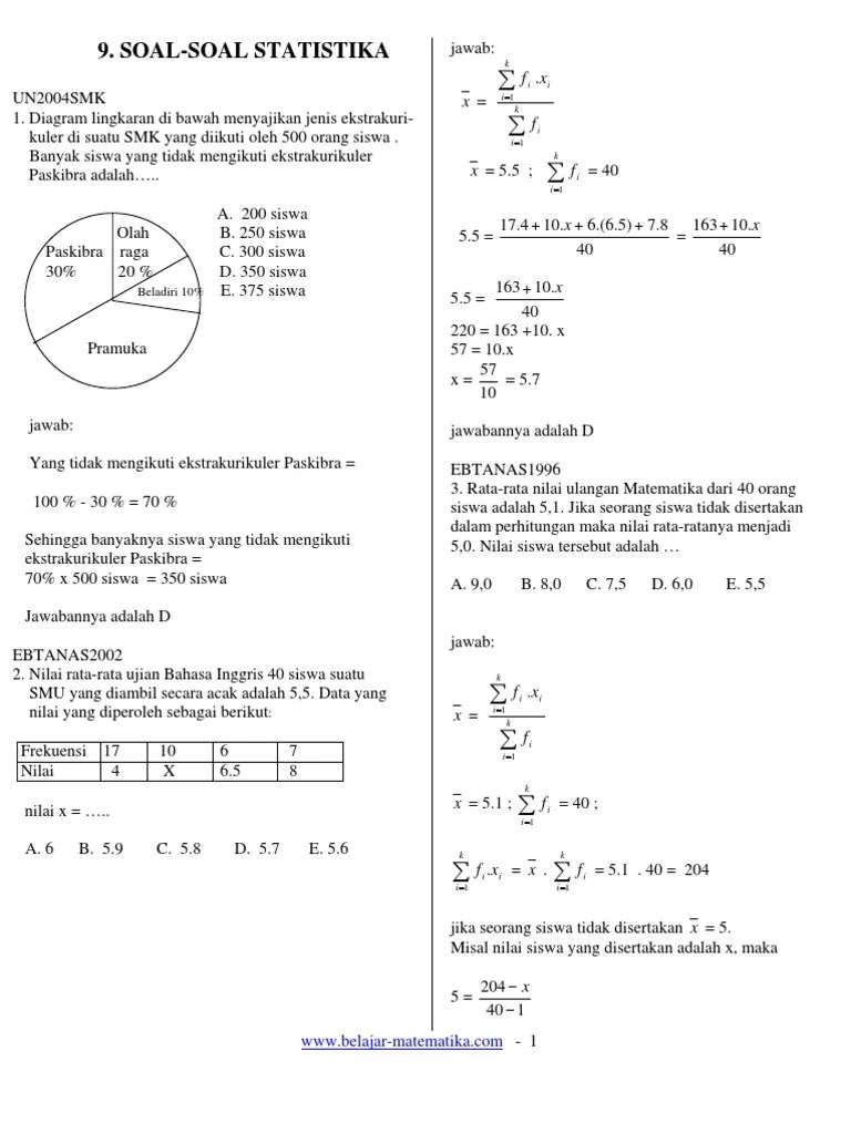 Contoh Soal Statistika Dan Penyelesaiannya Untuk Mahasiswa Semester 3 / Contoh Soal Statistika Rangkuman Lengkap Dan Kunci Jawaban / statistika pengertian jenis jenis data ppt download.
