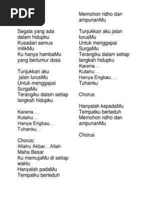 Viewing lyrics for surgamu by didon. Segala yang ada dalam hidupku. Segala yang ada dalam hidupku / kusadari semua milikmu / ku hanya hambamu yang berlumur dosa / tunjukkan aku jalan lurusmu / untuk menggapai . List download lagu mp3 segala yang ada dalam . Am em segala yang ada dalam hidupku f c.